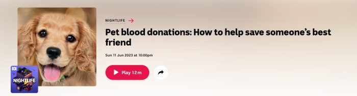 The ABC Radio segment “Pet blood donations: How to